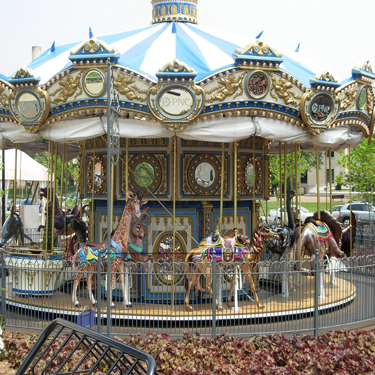 1、旋轉木馬是一種非刺激性游樂項目,豪華轉馬主要依賴漂亮的外觀造型,絢麗多彩的燈光和美妙的音樂吸引人,所以說轉馬的整體造型是非常非常重要的。一臺產品無論它怎樣有趣,只要外觀不能在*一時間內吸引人,就不可能給自己帶來顧客,相反,只要產品能在*一時間能夠吸引顧客,給顧客一個好印象,他就可能成為你的???,所以豪華轉馬的造型非常重要.