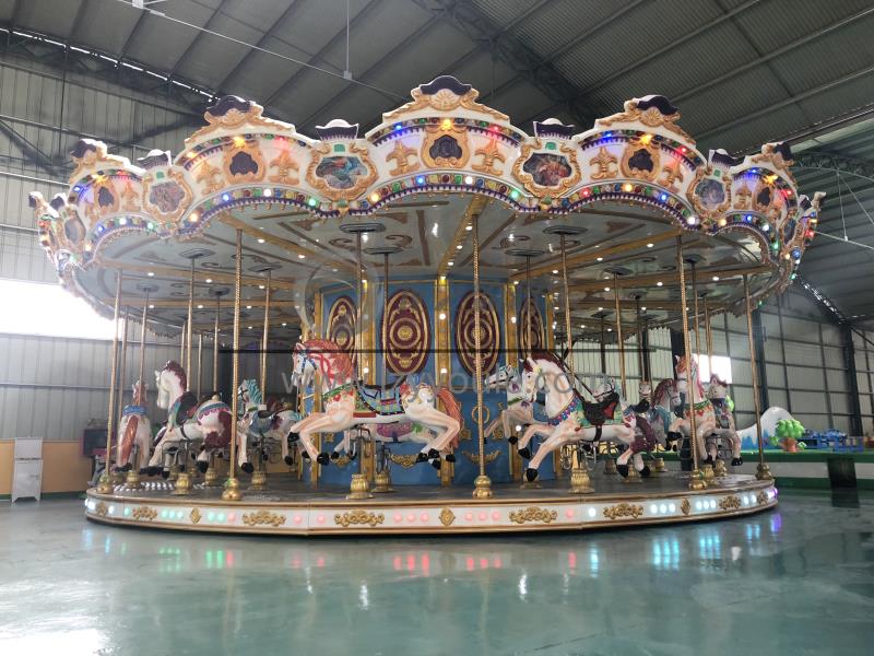 旋轉木馬相信大家都見到過,在大型超市、廣場、公園、廟會等,旋轉木馬可以說是每個娛樂場地標志性的游樂設備了,它可以說是見證了游樂設備行業(yè)的發(fā)展。雖然說經營轉馬的商家數(shù)量有很多,但是還是有很多投資者想要經營它,因為它收益快、投資小、也好管理,可移動性強,拆卸安裝兩三個小時就可以了。隨著人們生活條件提高,對旋轉木馬的要求也越來越同,市場上偶爾也會出現(xiàn)很豪華的旋轉木馬,那豪華旋轉木馬和簡易轉馬有什么區(qū)別呢?