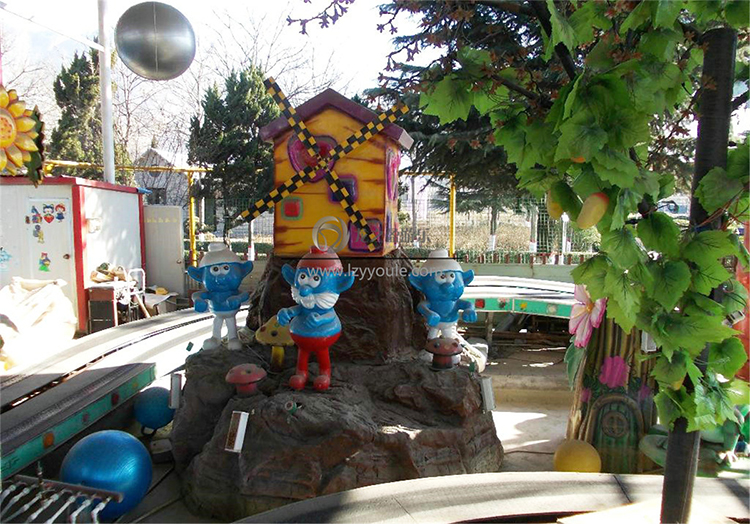 精靈王國作為游樂園設(shè)備軌道類產(chǎn)品,精靈王國采用軌道環(huán)軌式游樂方式,一群可愛乖巧的藍(lán)精靈、一個(gè)簡易溫暖的山頂之家、一個(gè)呆萌友好的青蛙、軌道上運(yùn)行的各種卡通造型的小火車,當(dāng)小朋友們乘坐到軌道火車中一圈又一圈的在藍(lán)色精靈王國中來回穿梭,仿佛與藍(lán)色精靈一起玩耍般的身臨其境。精靈王國作為游樂園設(shè)備還可根據(jù)不同大小的場地來定制軌道的長度與軌道和中央內(nèi)容物的豐富度,當(dāng)然作為游樂園設(shè)備設(shè)備的互動(dòng)性也是必不可少的,精靈王國中當(dāng)你座艙上的激光槍射擊小動(dòng)物時(shí)它們會(huì)噴出水花,樂趣無窮。